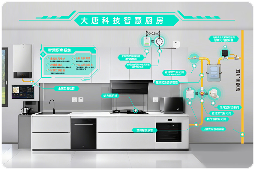 大唐科技以AI技术为核心驱动力,围绕“本质安全、智慧燃气、精准监测”三大方向,打造了一系列提升城市韧性的创新成果,重点展示了在智慧厨房、管道燃气用户本质安全路径等领域的整体解决方案与智能终端产品。